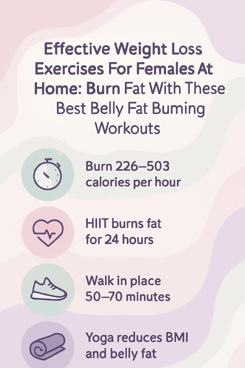 Effective weight loss exercises for females at home can help you burn belly fat and improve health. You do not need fancy equipment or a gym membership to begin. Pick a mix of aerobic exercise, simple strength moves, and core work that fits your schedule.