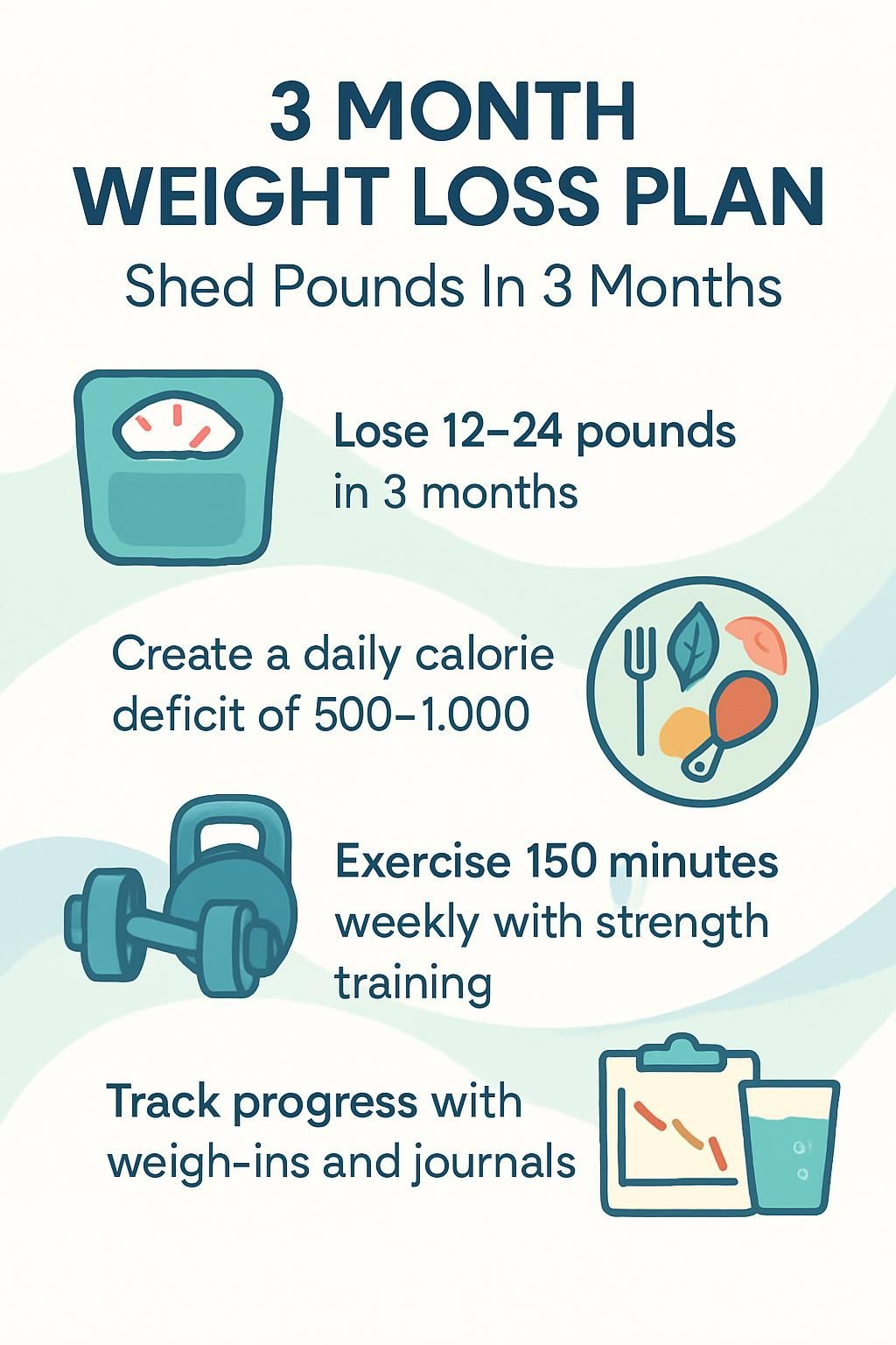 Trying to lose weight but unsure where to start? A clear 3 month weight loss plan can make the path simple and safe. Research and public health guidance suggest that losing 12 to 24 pounds in three months is realistic for most adults.