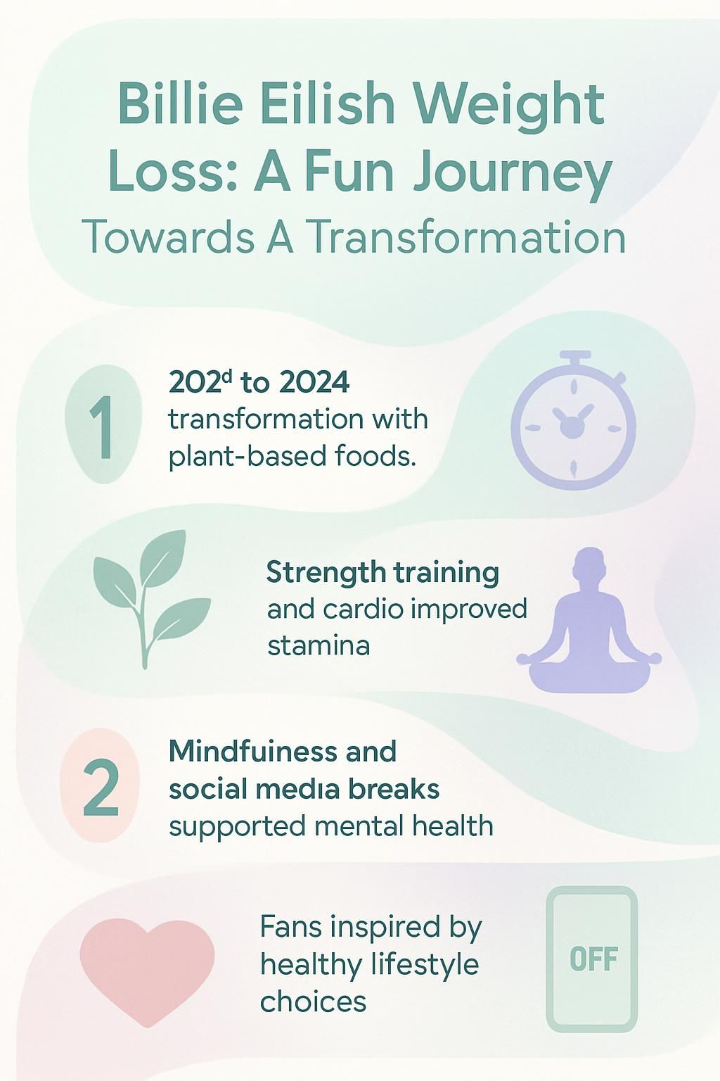 • From 2021 to 2024, Billie Eilish shifted to whole, plant-based meals, regular workouts, and better hydration, skipping crash diets.