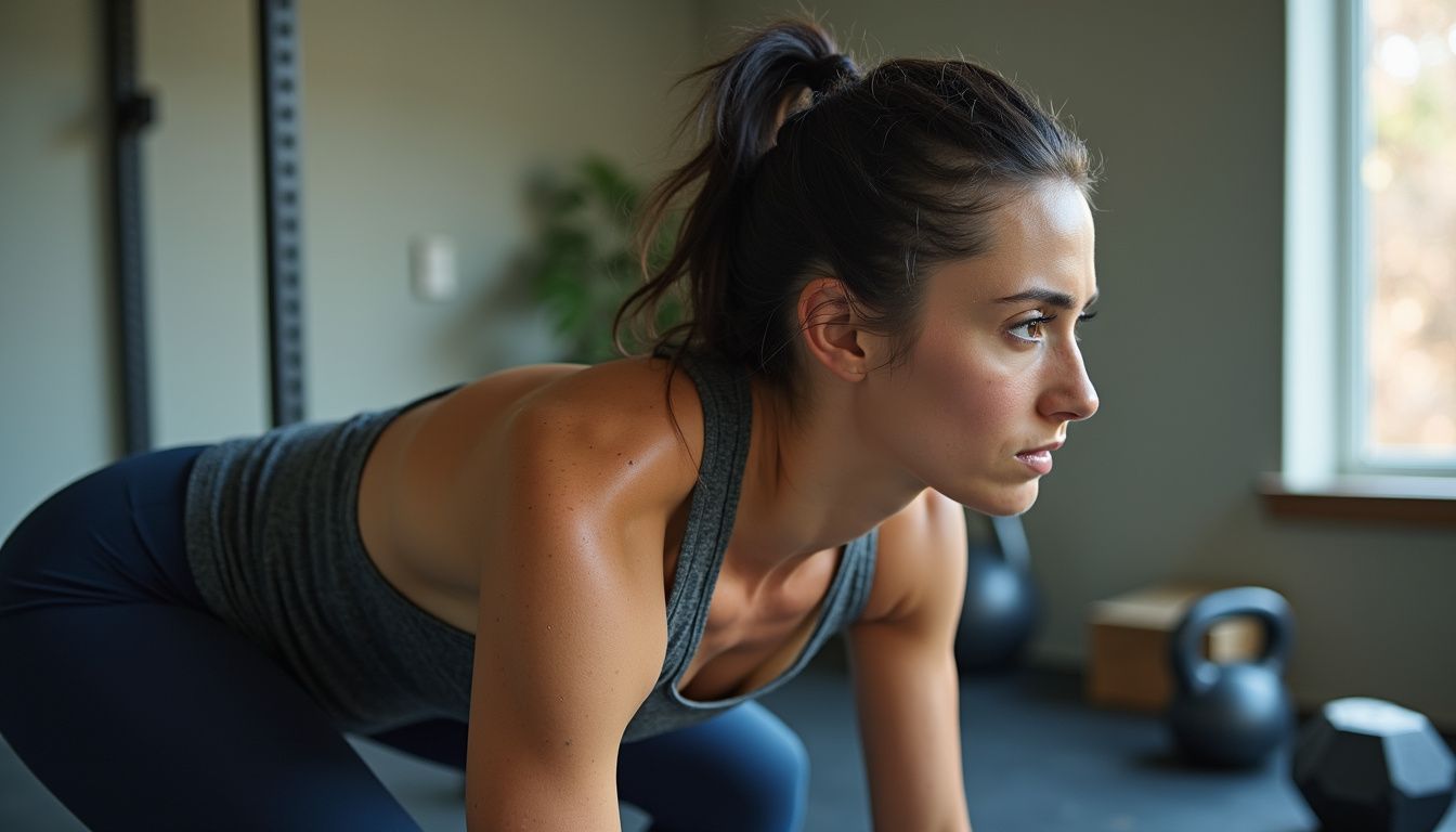 Use a simple circuit: lunges, push-ups, rows, and squats with controlled tempo. Add jump squats or step jumps for a short burst of power. Heavy weights are useful, but form and pace matter more than the number on the dumbbell.