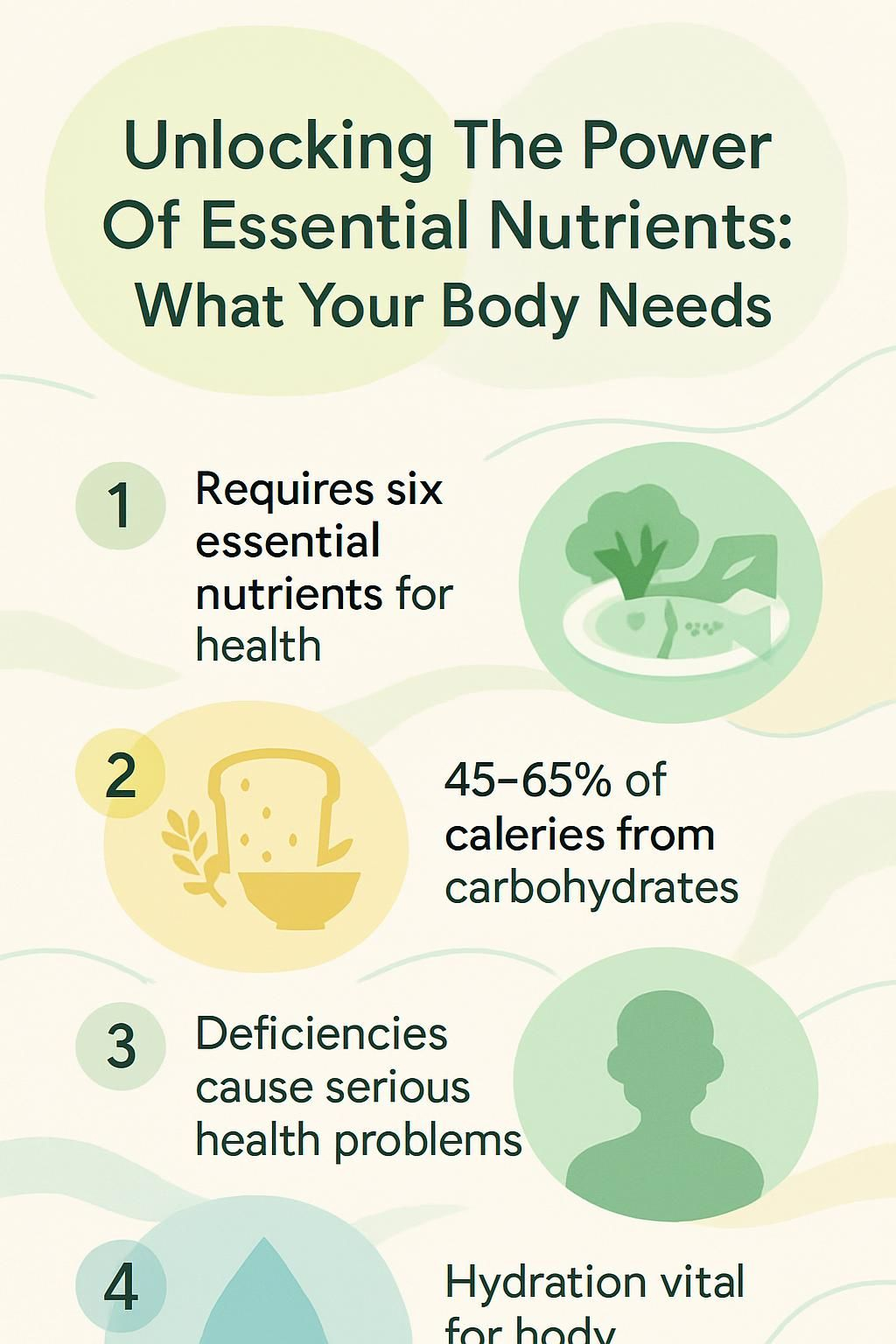 Essential nutrients are specific substances like proteins, carbohydrates, fats, vitamins, minerals, and water that the body cannot make on its own in enough amounts. The body needs these to support growth, repair tissues, produce energy, and maintain health. Research from the National Institutes of Health shows that lacking even one essential nutrient can lead to serious health problems.