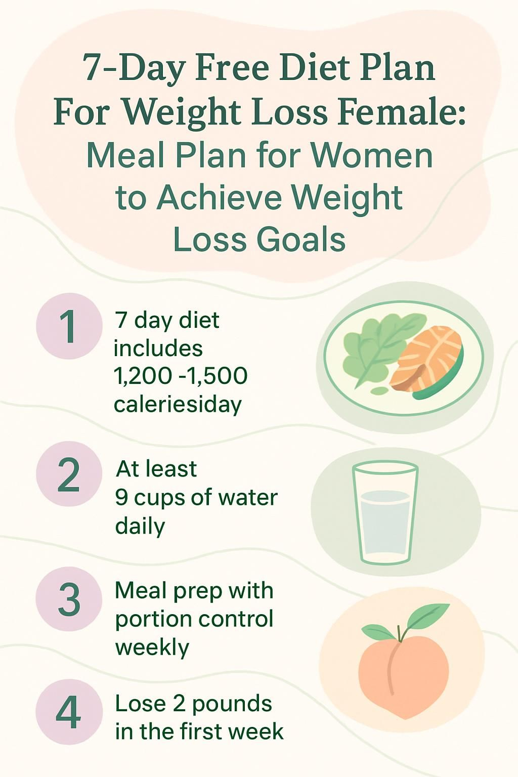 Simple routines give structure to your 7-Day Free Diet Plan for Weight Loss for Female. Use planners and shopping lists to make follow-through easier.