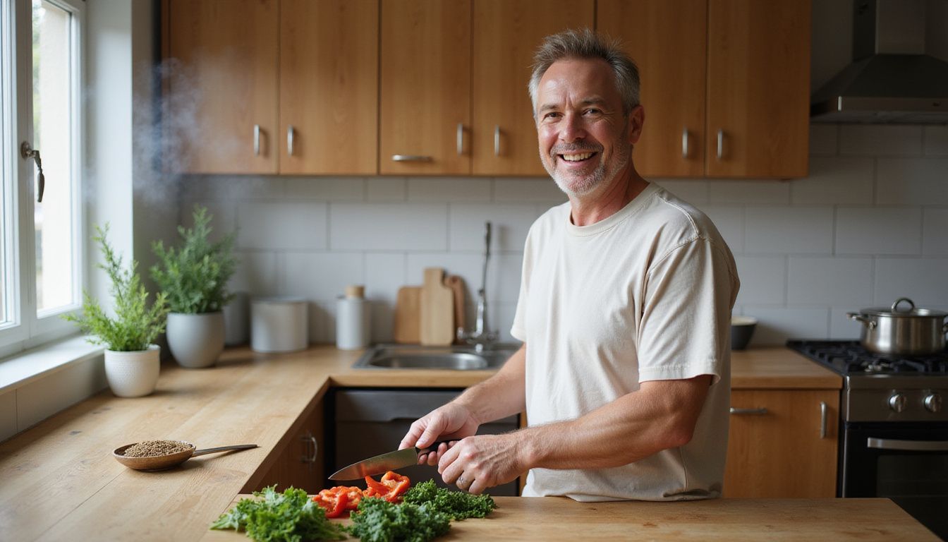He built regular activity into his schedule, no matter how busy filming or kitchen life became. Walking came first, then light strength work, then more intensity as energy improved.