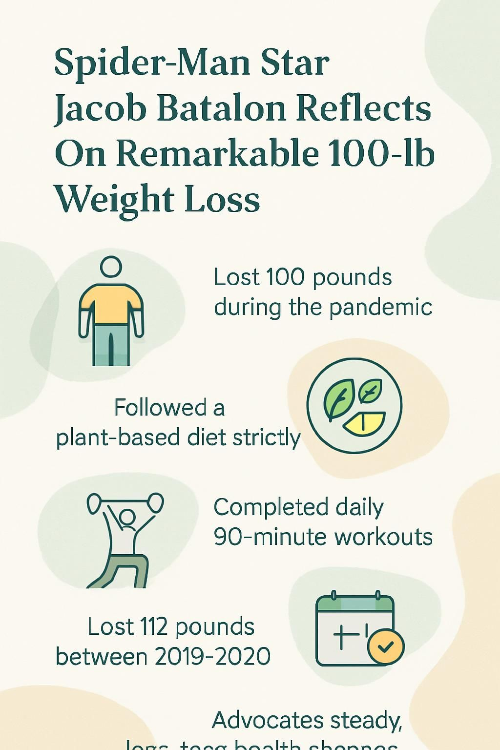If you want better health and steadier energy, Spider-Man star Jacob Batalon shows a clear path. His 100-pound weight loss started during the pandemic, built on simple daily habits. You can use the same approach to begin your own plan and keep it going.