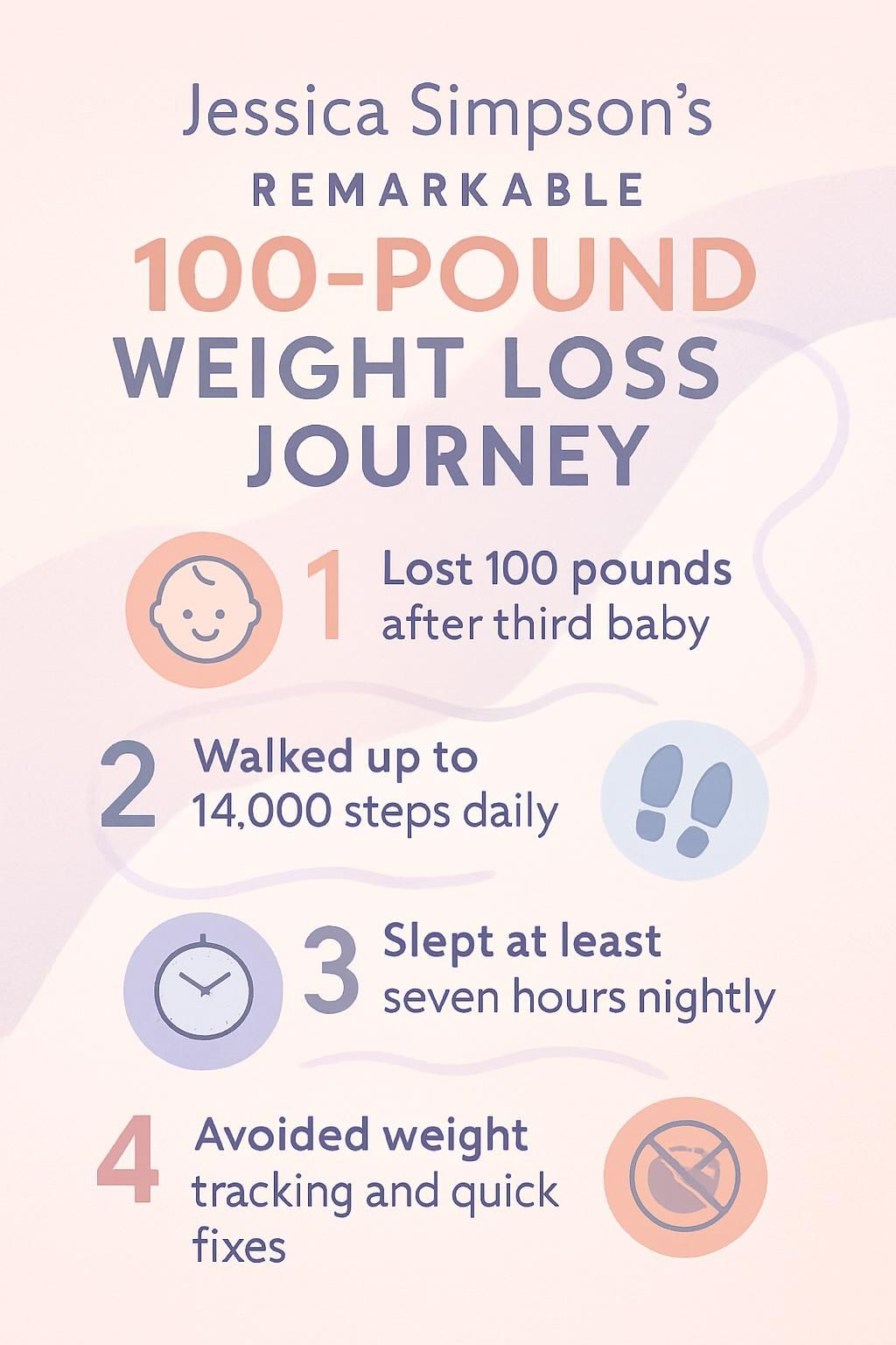 Jessica Simpson’s 100-pound weight loss shows the power of simple, repeatable habits. Clear motivation, balanced nutrition, daily steps, and short strength sessions work well together.
