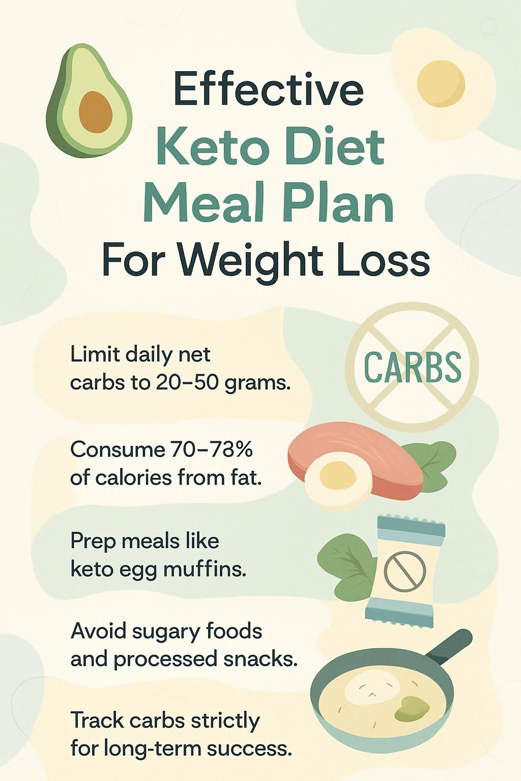 An effective keto diet meal plan for weight loss limits carbohydrate intake to about 20 to 50 grams per day and increases healthy fats and moderate protein. Research shows that this approach can help the body enter ketosis, a state where it burns fat for energy instead of carbohydrates. A typical plan includes eggs, poultry, fish, leafy greens, nuts, seeds, and oils such as olive or coconut oil.