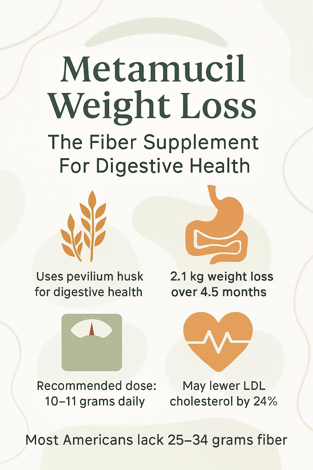 Metamucil, a psyllium fiber supplement, can support better digestive health and may help with weight management by increasing fullness and improving regularity. Research shows modest weight and cholesterol benefits, especially when combined with a nutrient dense diet and daily movement.