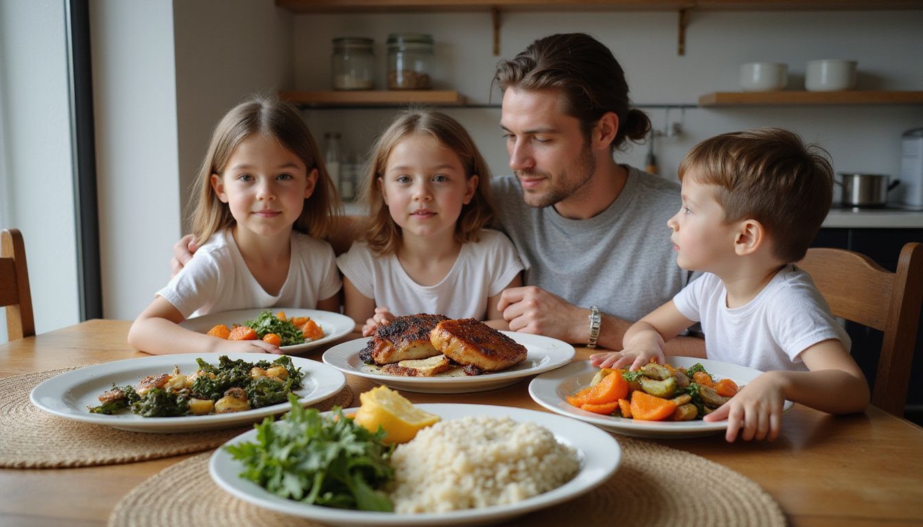 Fill half your plate with colorful vegetables like spinach, broccoli, peppers, or carrots. Add a serving of lean protein such as grilled chicken, fish, beans, or tofu. Include a whole grain like brown rice or quinoa for lasting energy.