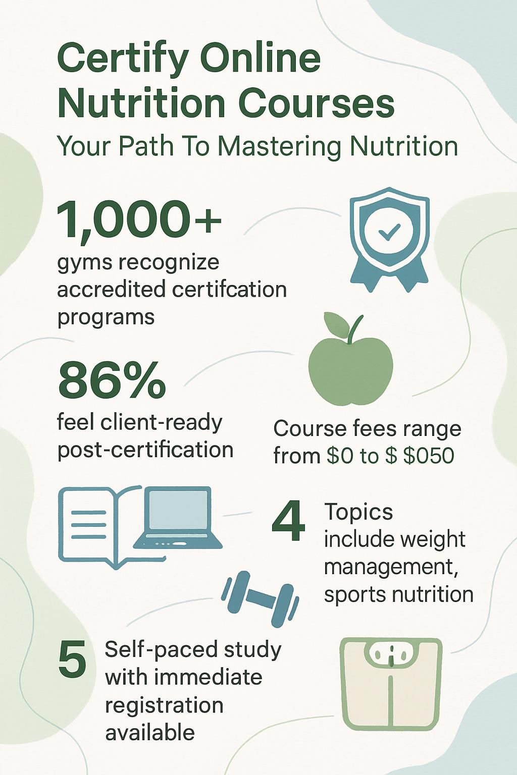 Certify online nutrition courses offer structured learning, evidence-based content, and flexible schedules. These programs help you master essential topics such as dietary guidelines, nutrient functions, and meal planning. Many learners report improved confidence when applying nutritional knowledge to real-life situations.