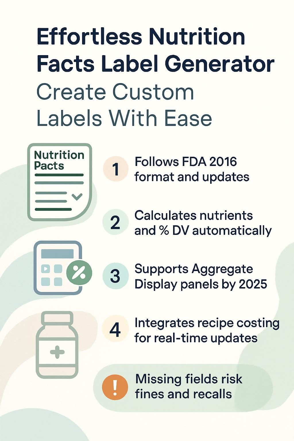A nutrition label generator helps you produce accurate panels quickly. It supports compliance and improves your workflow from recipe to package.