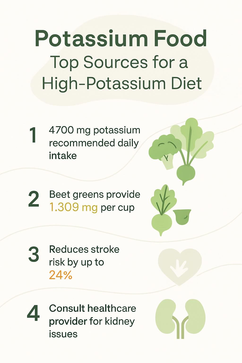It also helps your body flush excess sodium, easing pressure on blood vessels. Diets with plenty of potassium foods can support normal blood pressure. Getting enough may lower kidney stone risk because the kidneys reabsorb more calcium, which reduces the calcium that forms stones. Better calcium handling also supports bone density over time.