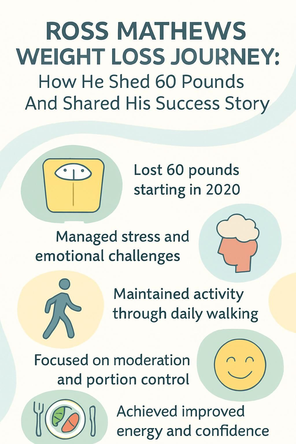 Ross Mathews achieved his 60-pound weight loss through a structured diet, regular exercise, and consistent self-monitoring. He focused on portion control, increased his intake of nutrient-dense foods, and tracked his progress. According to interviews and his public statements, he also sought support from friends and professionals to stay motivated.