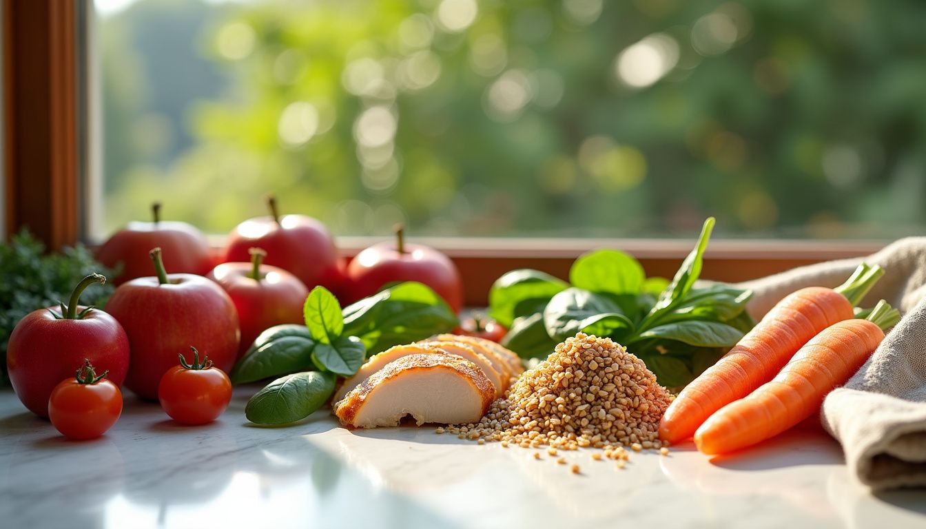 Fresh vegetables, lean proteins, and whole grains sit at the core of her plan. Examples include grilled chicken, salmon, eggs, leafy greens, brown rice, sweet potatoes, broccoli, and berries.
