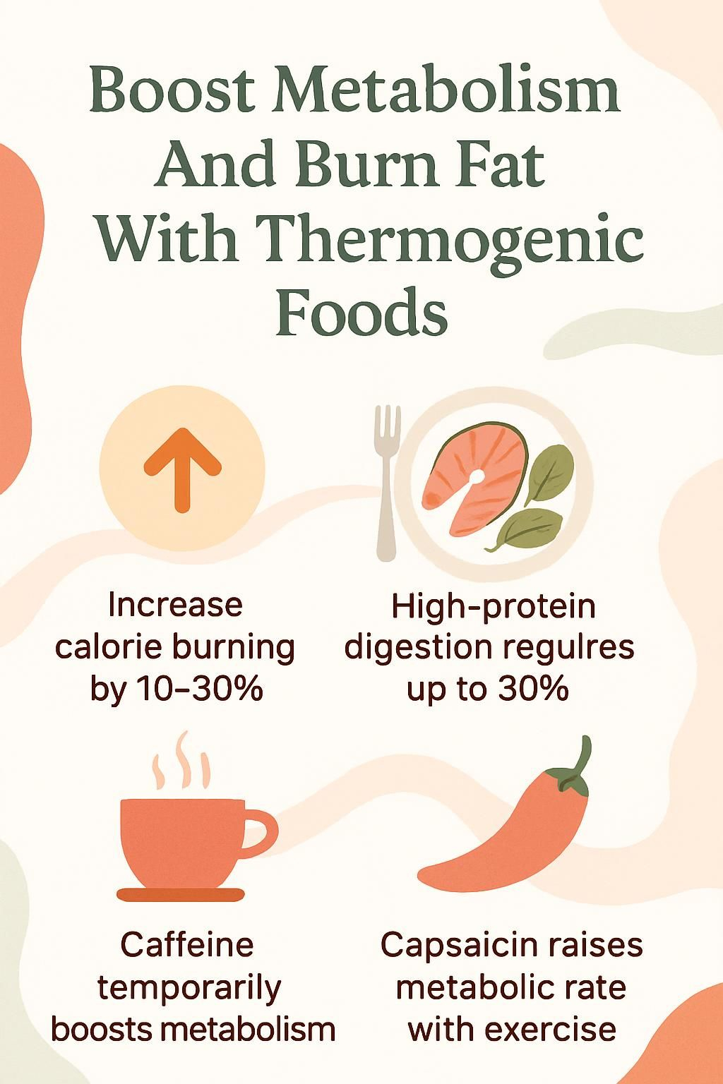 Thermogenic foods can boost your metabolism and help you burn fat, especially when combined with smart habits. Lean proteins, spicy peppers, green tea, and fiber rich foods raise calorie burn during digestion and improve satiety.
