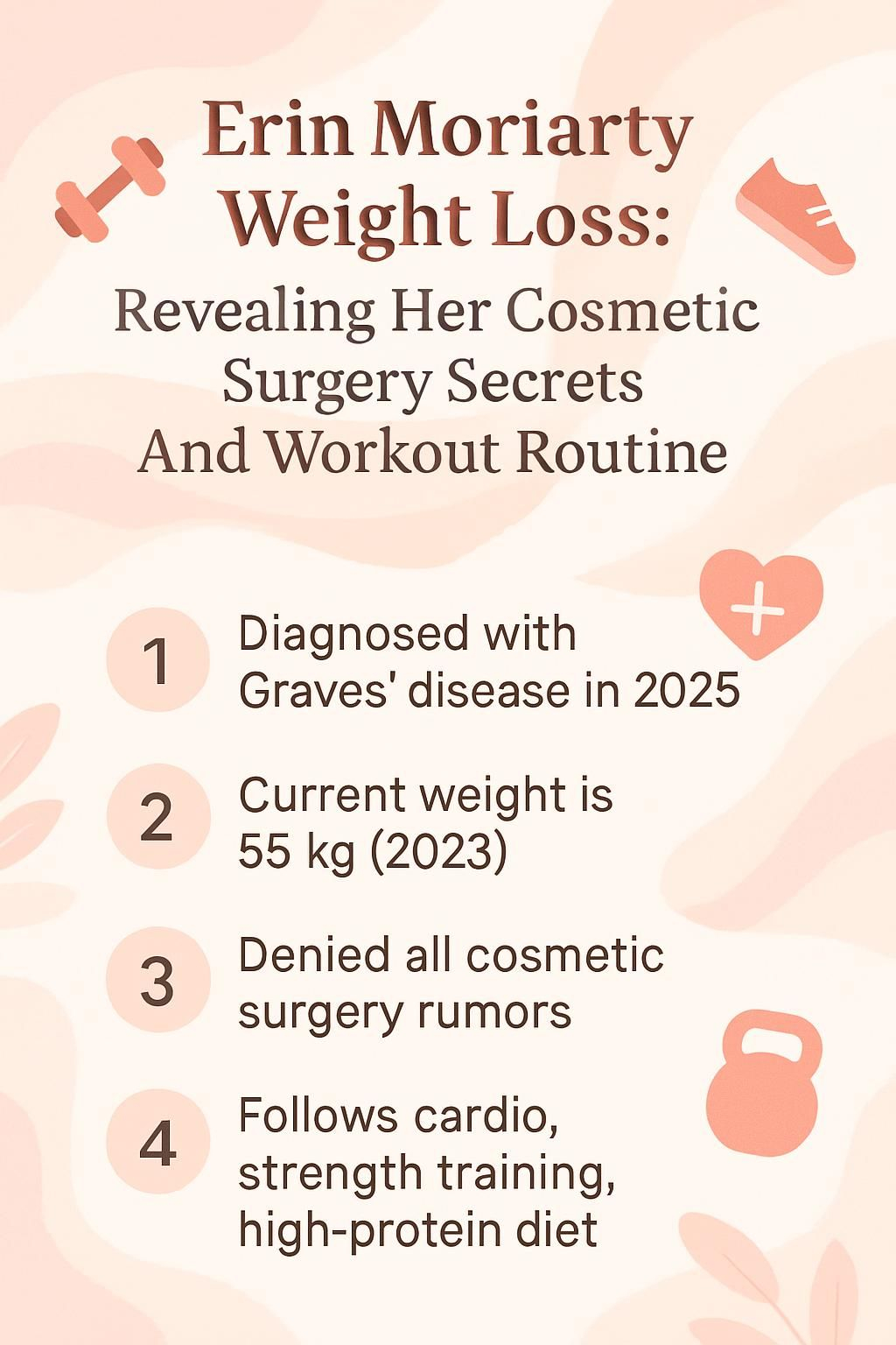 Summary: Erin Moriarty’s weight loss journey centers on consistent exercise, balanced nutrition, and professional guidance. No confirmed reports link her transformation to cosmetic surgery. Her approach reflects evidence-based health practices.